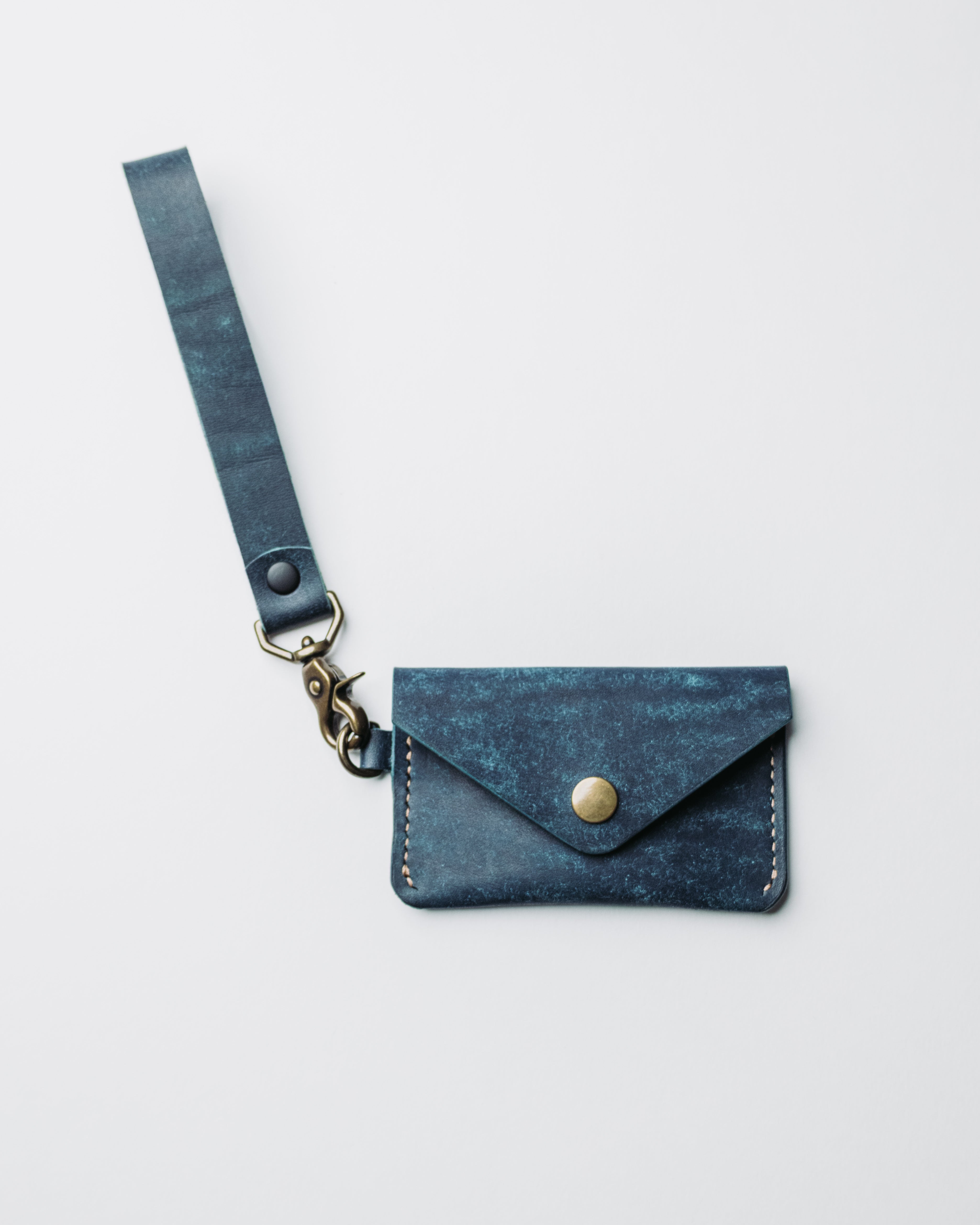 The Wristlet Wallet w/ clip is a hand-crafted card holder made from premium full-grain leather, designed to carefully organize your most important cards in a sleek minimalist design. With one pocket, along with a snap enclosure, it can hold up to six cards and cash.